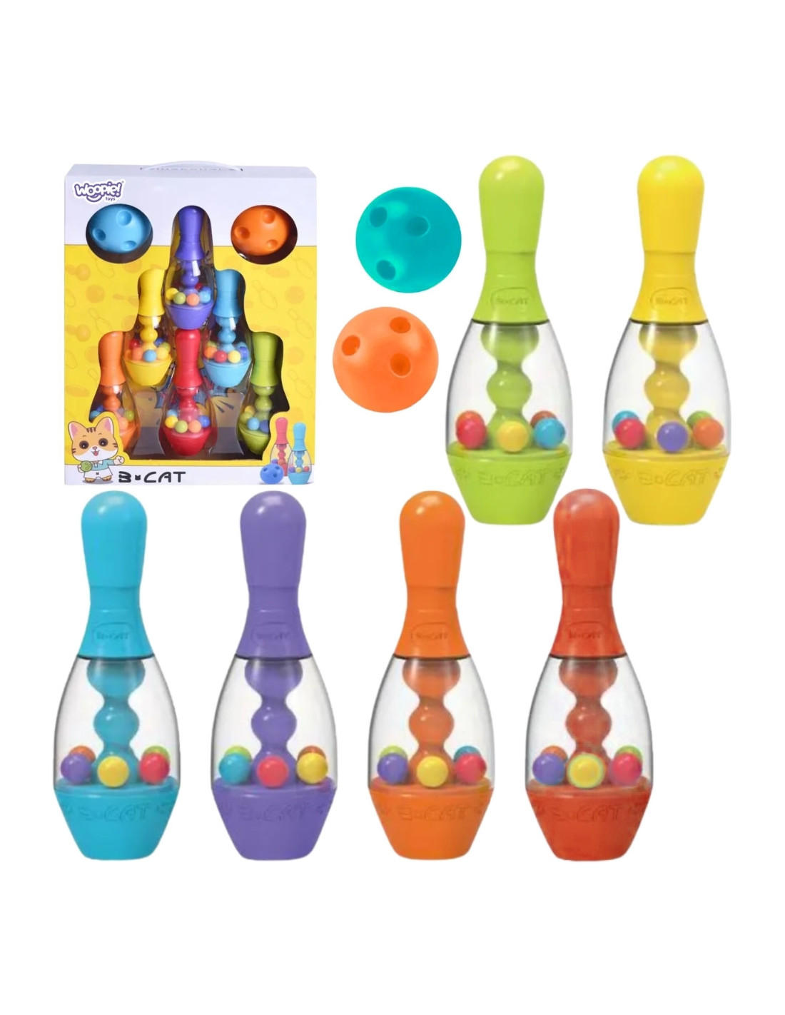 Pistas de boliche coloridas e sensoriais da marca Woopie são tudo o que as crianças precisam para desenvolver suas habilidades motoras e se divertir ao mesmo tempo. O conjunto inclui 6 pinos e 2 bolas feitas de material macio. Não precisamos convencê-lo de que jogar boliche será muito divertido para seu pequeno, mas também trará muitos benefícios educacionais. As pistas de boliche possuem superfícies com diferentes padrões para estimular o sentido sensorial e o tato. O brinquedo desenvolve as habilidades motoras do seu filho por meio de, m.in: correr e arremessar. ✅ Características: ✔️ possui padrões para estimular sensoriais, tato, sensação sensorial e senso de tato ✔️, feitos de material colorido e adequado para crianças. ✔️ Muita diversão e entretenimento educativo para uma criança e ✔️ mais crianças, ✔️ perfeito para um presente Inclui: ✔️ 6 unidades. Bolas de Arremesso Coloridas ✔️ de Boliche 2